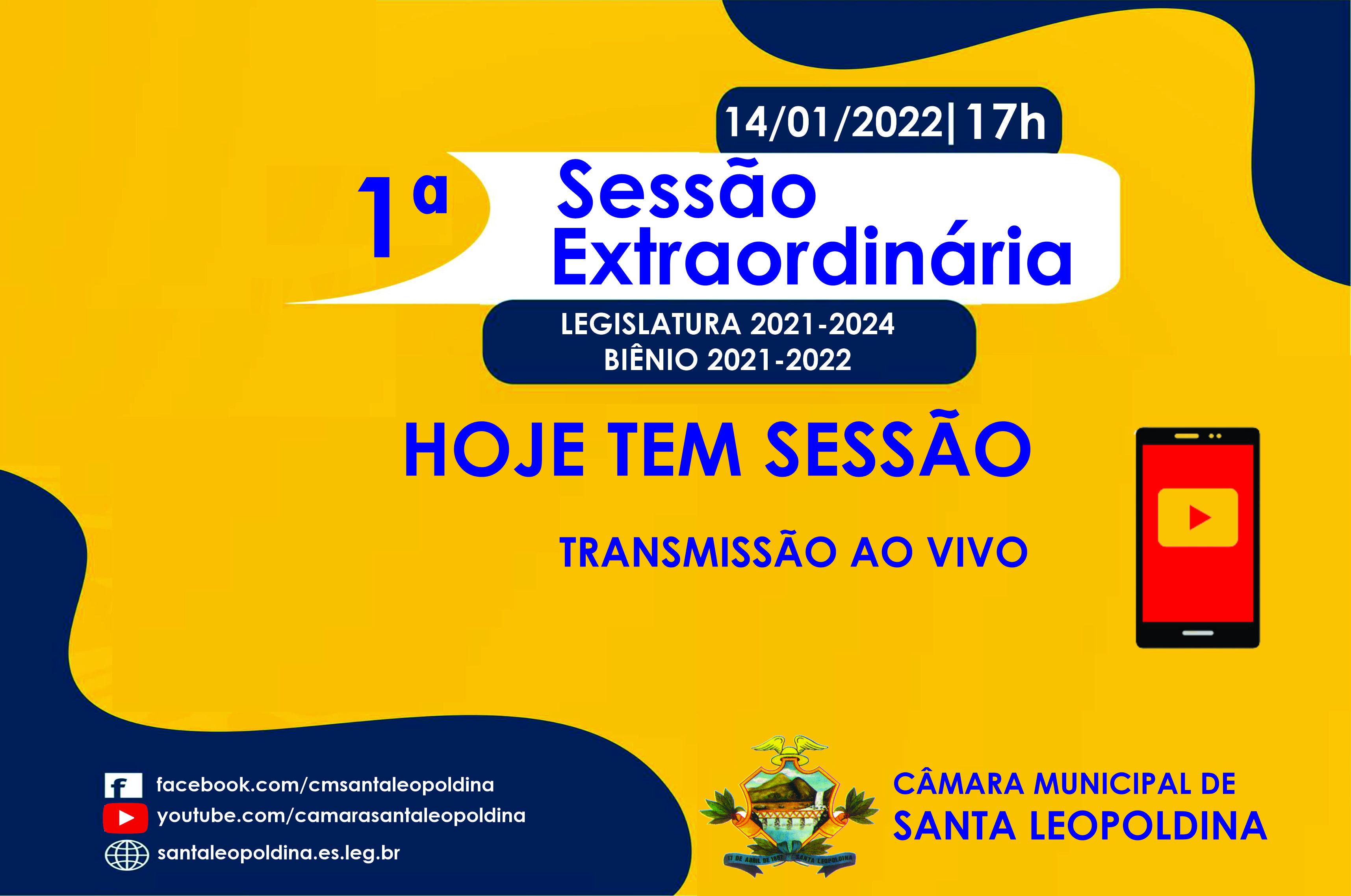 Acompanhe a Sessão Extraordinária do Quadriênio 2021/2024 nesta sexta-feira (14/01), através da página do Poder Legislativo Municipal no YOUTUBE.